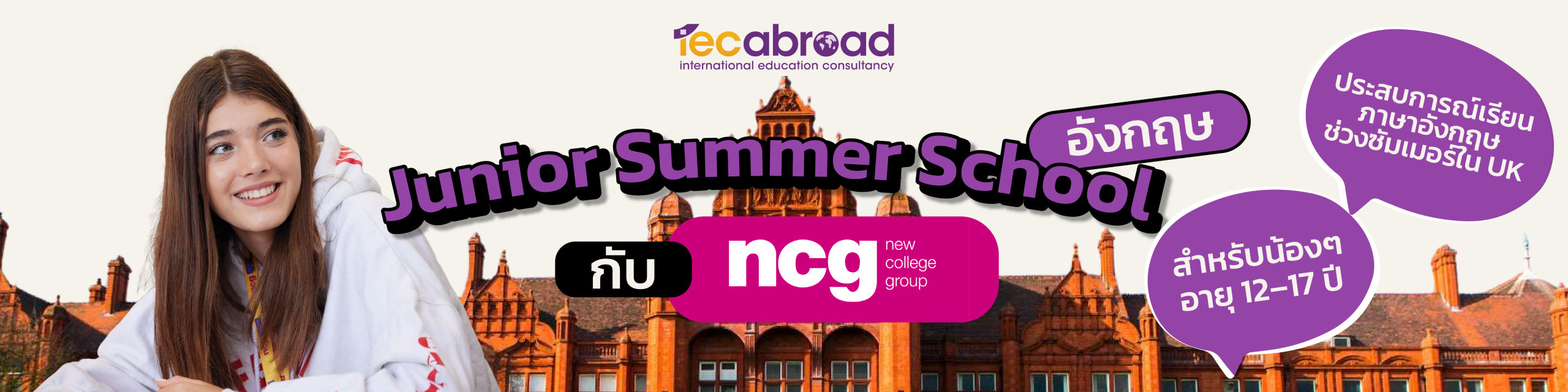 ด้วยความเชี่ยวชาญด้านการสอนภาษาอังกฤษและการจัดแคมป์สำหรับเยาวชน NCG Junior Summer School 2026 จึงเป็นหนึ่งในตัวเลือกที่คุ้มค่าและปลอดภัย สำหรับผู้ปกครองที่อยากให้น้องๆ ใช้ซัมเมอร์อย่างมีคุณภาพ และได้ประสบการณ์ต่างประเทศที่น่าจดจำตั้งแต่อายุยังน้อยค่ะ หากสนใจเพิ่มเติม สามารถทักเข้ามาปรึกษา IEC Abroad ก่อนได้เลยนะคะ