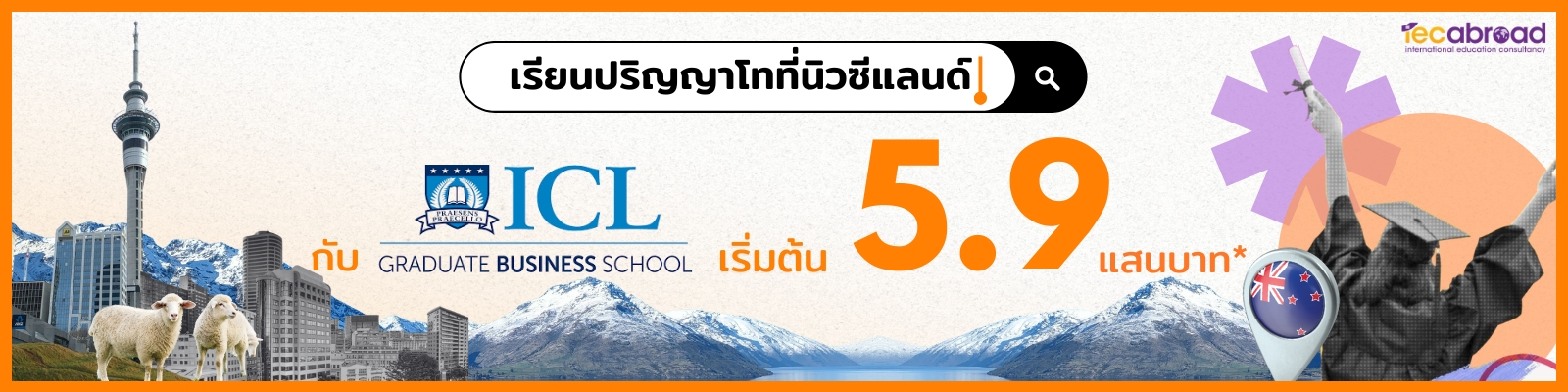 หากคุณฝันอยากได้ ปริญญาโทต่างประเทศ แต่ยังกังวลเรื่องงบประมาณและระยะเวลา…นิวซีแลนด์ คือหนึ่งในตัวเลือกที่น่าสนใจที่สุดในขณะนี้ ด้วยหลักสูตร Master of Management จาก ICL Graduate Business School ที่เรียนจบได้ภายใน 12 เดือน พร้อมสิทธิ์ทำงานหลังจบการศึกษาได้ทันทีนานถึง 3 ปี