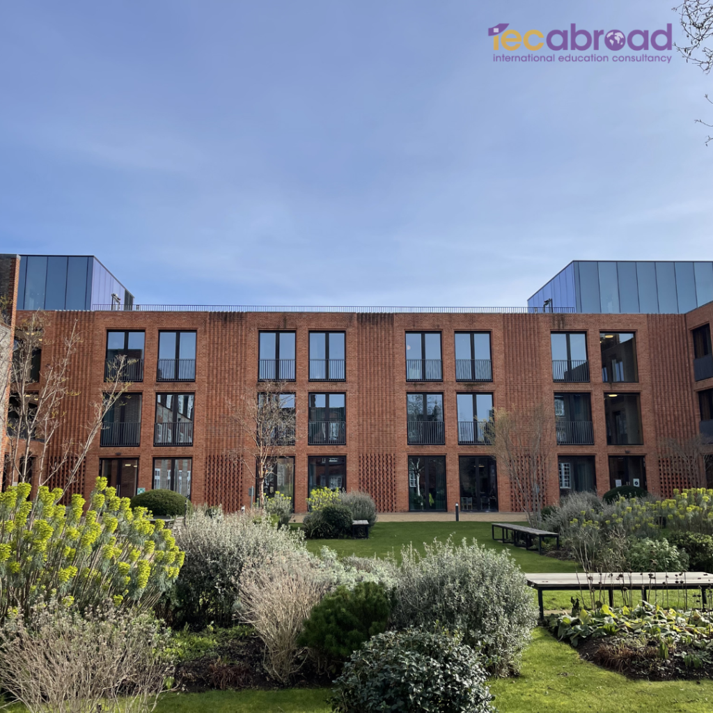 ตัวอาคารอิฐแดงสไตล์วิคตอเรียนตั้งเรียงรายท่ามกลางสวนสีเขียวขนาดใหญ่ ซึ่งในช่วงซัมเมอร์จะเต็มไปด้วยดอกไม้หลากสี ทำให้ทั้งคอลเลจดูสวย คลาสสิก และมีเสน่ห์แบบมหาวิทยาลัยอังกฤษดั้งเดิม ภายในแคมปัสยังมีพื้นที่สวนและสนามหญ้าให้เดินเล่น พักผ่อน หรือทำกิจกรรมกลางแจ้งได้หลายมุม