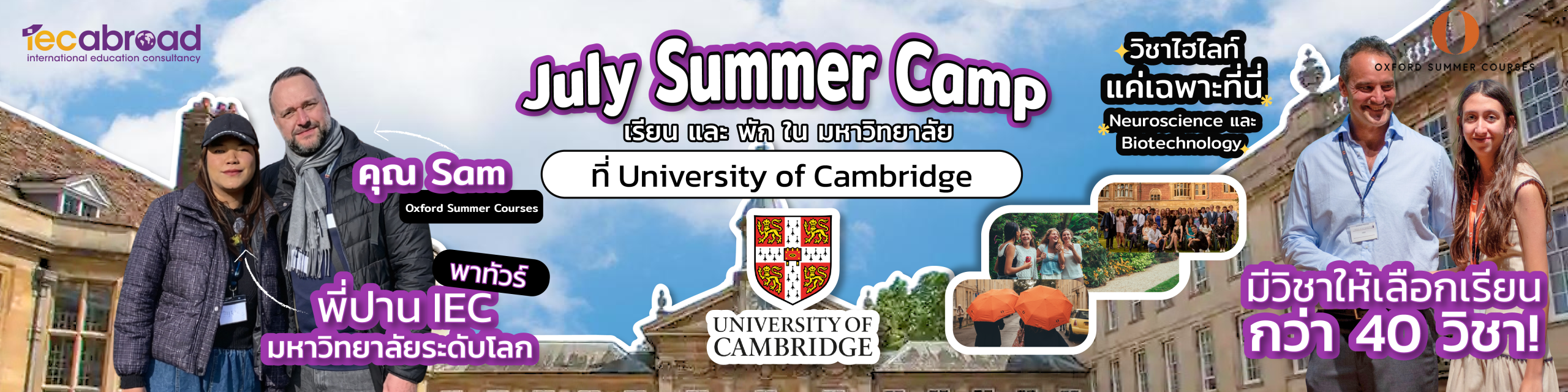 Summer Programme ที่ University of Cambridge สำหรับน้องๆ อายุ 13–24 ปี ที่จัดขึ้นในแคมปัสต่างๆ ของ University of Cambridge เมืองมหาวิทยาลัยเก่าแก่ที่ผสมผสานบรรยากาศประวัติศาสตร์เข้ากับความทันสมัย และขึ้นชื่อระดับโลกด้านวิทยาศาสตร์และนวัตกรรม