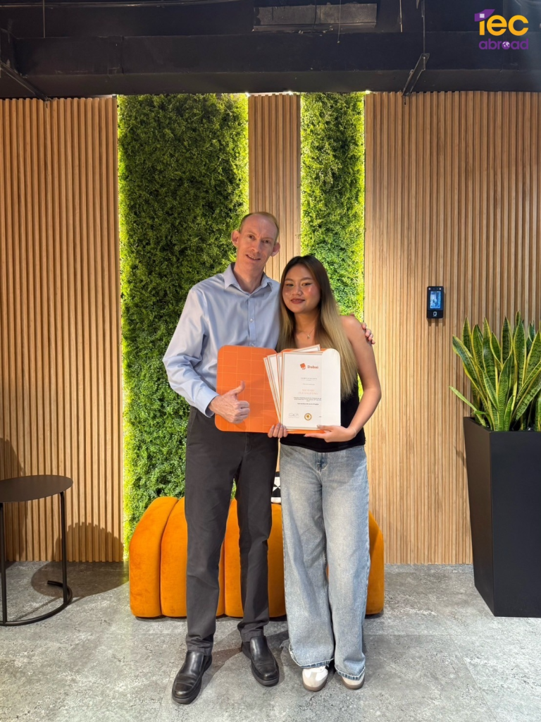ที่เลือกปรึกษาการไปเรียนภาษากับพี่ ๆ IEC Abroad เพราะก่อนจะมาลองหาข้อมูลหลากหลายเว็บไซต์ หาข้อมูลเอเจนซี่หลายเจ้า จนมาเจอพี่ ๆ IEC Abroad รู้สึกประทับใจตั้งแต่ครั้งแรกทีเข้าไปพูดคุย จนตัดสินใจที่จะไปเรียนดูไบกับที่นี่ พี่ ๆ ให้คำปรึกษาดี ให้คำแนะนำดีมาก ๆ จัดการเอกสารให้ครบ ไม่ถึงเดือนวีซ่าก็ออกพร้อมบิน เรื่องตั๋วเรื่องไฟลท์ พี่ ๆ จัดการให้ทั้งหมดเลย ช่วงเรียนอยู่ที่ดูไบพี่ ๆ ก็ทักมาถามตลอดว่าเป็นยังไงบ้าง มาอัพเดทเรื่อย ๆ ไม่เคยหายไปเลย รู้สึกประทับใจมาก ๆ เลยค่ะ คิดไม่ผิดเลยที่ตัดสินใจมากับ IEC Abroad
